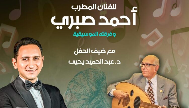 ضمن أنشطة وزارة الثقافة الفنية، وفي ليلة حب لموسيقار الأجيال “محمد عبد الوهاب” يقدم المطرب “أحمد صبري” باقة من أجمل الأغاني بمصاحبة فرقته الموسيقية، منها: “عندما يأتي المساء”، “سهرت انسى الدنيا”، “امتى الزمان”، “اجري اجري”، “قوللي عملك ايه” في الثامنة مساء الخميس “26 ديسمبر”، “بقصر الأمير بشتاك” بشارع المعز لدين الله الفاطمي- التابع لقطاع صندوق التنمية الثقافية. كما يستضيف الفنان “أحمد صبري” الفنان د.”عبد الحميد يحيى” الذي انطلق في عالم الغناء ليلقَى تفاعل كبير بين نشطاء صفحات التواصل الإجتماعي والجمهور من مختلف الأعمار، كما تشاركه بالحفل عازفة التشيلو الأمريكية “كيرا وايس” والمطربة سارة حلمي.