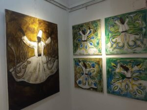 من اللحظة الأولى لدخول المعرض، يجد الزائر نفسه محاطًا بأعمال فنية مترابطة كأنها نسيج واحد، رغم اختلاف الأساليب والاتجاهات الفنية التي تنتمي إليها. لم تكن اللوحات مجرد أعمال مستقلة، بل تناغمت جميعها ضمن مفهوم موحد يحمل طابعًا صوفيًا روحانيًا بالغ الدقة. كل عمل فني يعكس حالة وجدانية مختلفة، لكنه في الوقت ذاته يصب في بحر واحد من التأمل والتواصل مع الذات والوجود.