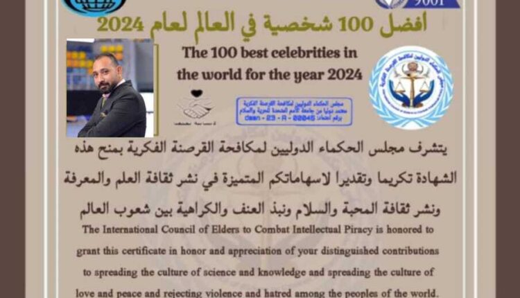 يتقدم كيان شباب لدعم مصر بخالص التهاني والتبريكات إلى السيد / أحمد صلاح إمبابي بمناسبة تكريمه ضمن أفضل 100 شخصية في العالم لعام 2024